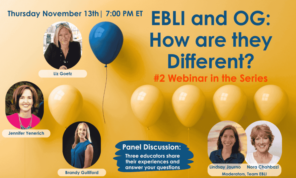 This panel discussion will feature 3 educators who have taught both EBLI and OG extensively. They will share their experiences and highlight the differences in the two approaches then answer questions from participants at the end.